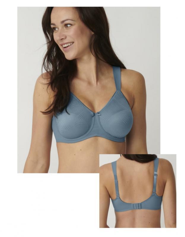 Sutien din familia minimizerelor, cu proprietatea de micsorare a aspectului bustului, cu armatura si cupe simple din material stretch, cu aspect usor lucios. Croiala permite o sustinere excelenta pana la cupe si circumferinte mari.
