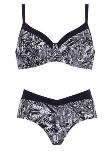 Costum de baie din 2 piese: sutien cu armatura si cupe simple doar din materialul costumului de baie, cu o croiala menita sa asigure sustinere pana la cupe si circumferinte mari. Slipul are croiala clasica la spate si latime medie pe solduri. Materialul are proprietatea de uscare rapida.